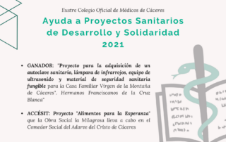 El Colegio de Médicos de Cáceres ha concedido la ayuda a proyectos sanitarios de desarrollo y solidaridad en su edición 2021 al "Proyecto para la adquisición de un autoclave sanitario, lámpara de infrarrojos, equipo de [...]