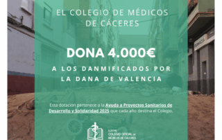 El Colegio de Médicos de Cáceres dona 4.000 euros para ayudar a los afectados por la DANA en Valencia