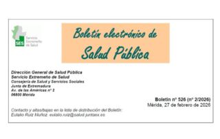 El Servicio Extremeño de Salud, a través de la Dirección General de Salud Pública, ha publicado el número 520 del Boletín Electrónico de Salud Pública de Extremadura, con fecha 27 de febrero de 2026. Este [...]