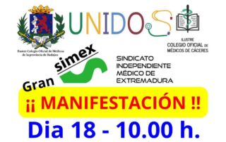 El Sindicato Médico de Extremadura (SIMEX), con el apoyo del Colegio Oficial de Médicos de Cáceres y el Colegio Oficial de Médicos de Badajoz, ha convocado una manifestación que tendrá lugar el próximo miércoles, día [...]