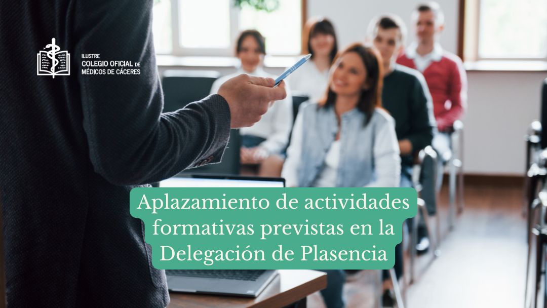El Colegio de Médicos de Cáceres informa de que, por motivos organizativos de última hora, han sido aplazadas dos actividades formativas previstas en la Delegación del Colegio Oficial de Médicos de Plasencia.