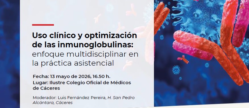 El próximo 13 de mayo de 2026 se celebrará en el Ilustre Colegio Oficial de Médicos de Cáceres una jornada centrada en el uso clínico y la optimización de las inmunoglobulinas, con un enfoque multidisciplinar en la práctica asistencial.
