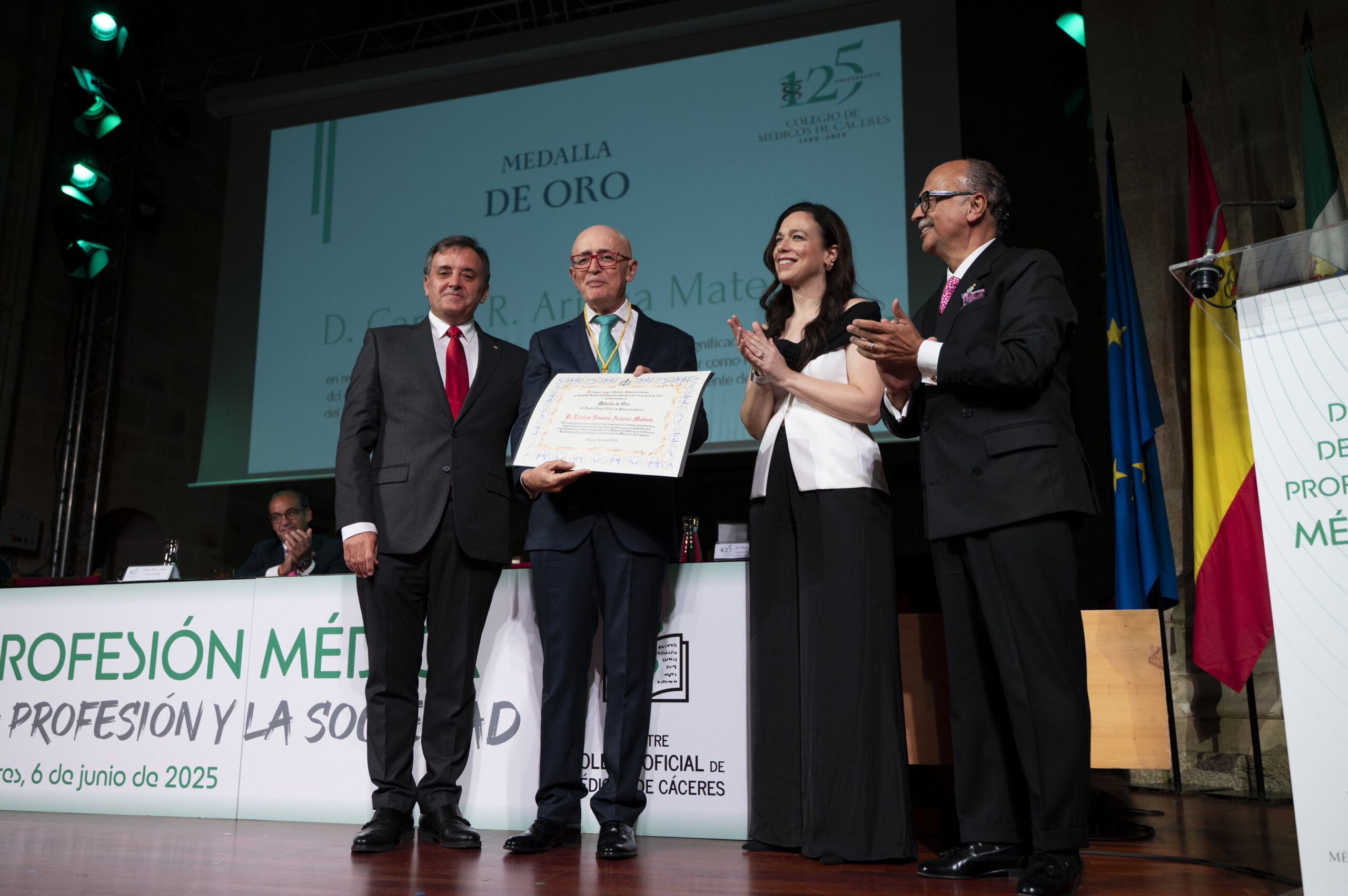 Uno de los momentos más simbólicos fue la entrega de medallas conmemorativas por 25 años de colegiación ininterrumpida en Cáceres a 16 médicos cacereños. En reconocimiento a la ética profesional, se concedieron Distinciones Colegiales a exmiembros de la Comisión Deontológica del Colegio, a D. Dimas Igual Fraile, Dª Helena López de Ceballos Reyna y D. Hermenegildo Fernández Sánchez.