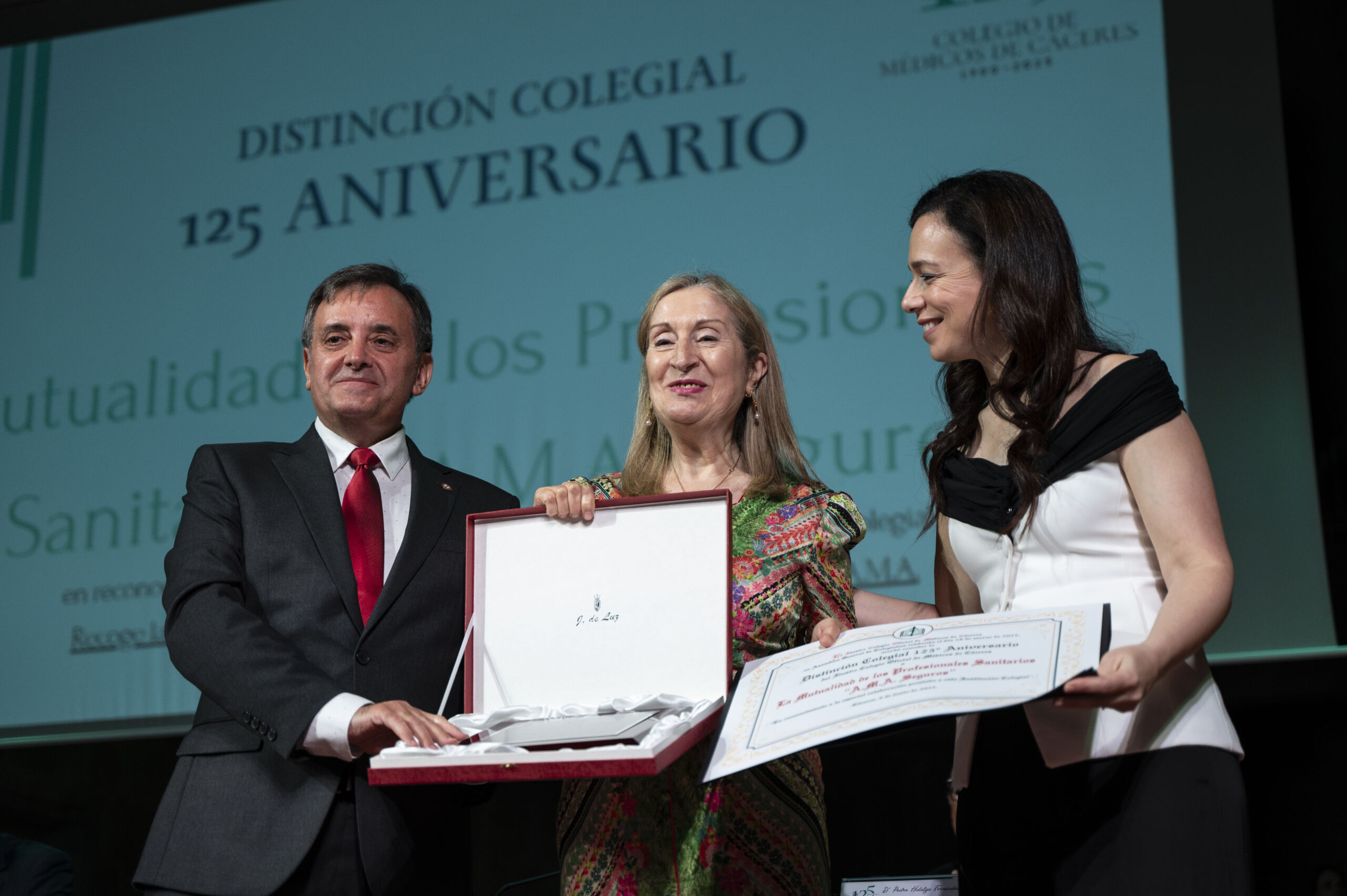 Dentro de las distinciones especiales por el aniversario, fueron reconocidos los expresidentes del Colegio D. José Raimundo García Arroyo, D. Luis Enríquez Acosta y D. Tomás del Monte González, así como la Mutualidad de los Profesionales Sanitarios (A.M.A.) y Mutual Médica, cuyas representantes —D. ª Ana Pastor Julián y D. ª Asunción Torrents Fernández— recogieron los galardones.