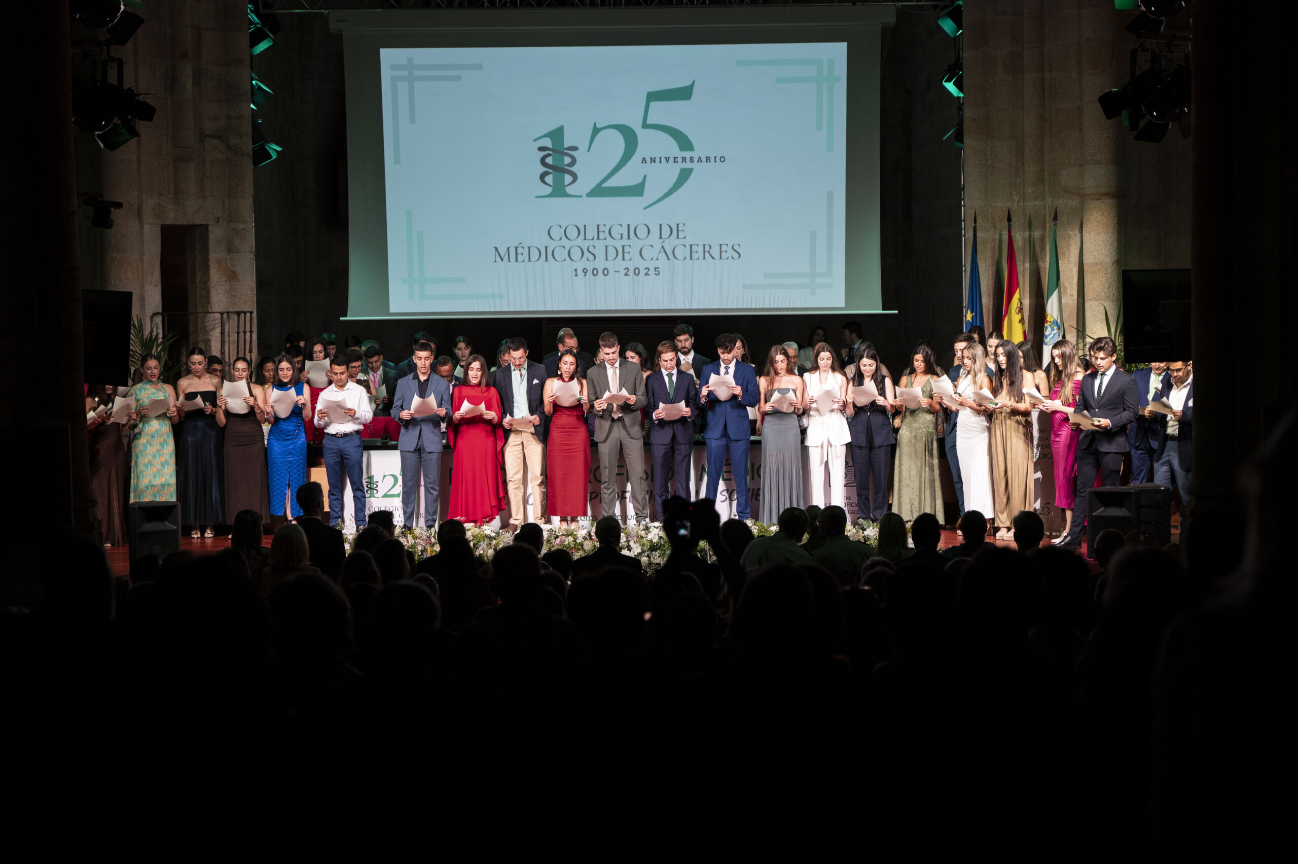 La ceremonia, conducida por el Secretario General del Colegio, D. Luis Tobajas Belvís, y la periodista Lola Trigoso, combinó emoción, solemnidad y música, con actuaciones de la Escolanía y el Coro Juvenil del Conservatorio Oficial de Música “Hermanos Berzosa” y del Conservatorio Profesional de Danza de Cáceres.