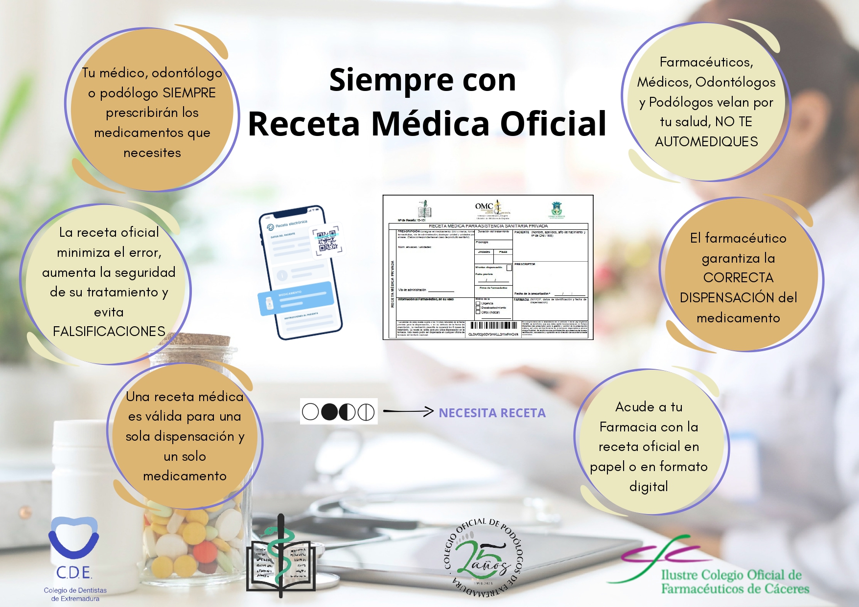 Desde el Colegio Oficial de Médicos de Cáceres queremos recordar a todos los médicos colegiados que, conforme al Real Decreto 1718/2010, de 17 de diciembre, sobre Receta Médica y Órdenes de Dispensación, la prescripción de medicamentos, tanto en la asistencia sanitaria pública como privada, debe realizarse de acuerdo a las normativas establecidas, y cumplir con las medidas de seguridad antifalsificación.