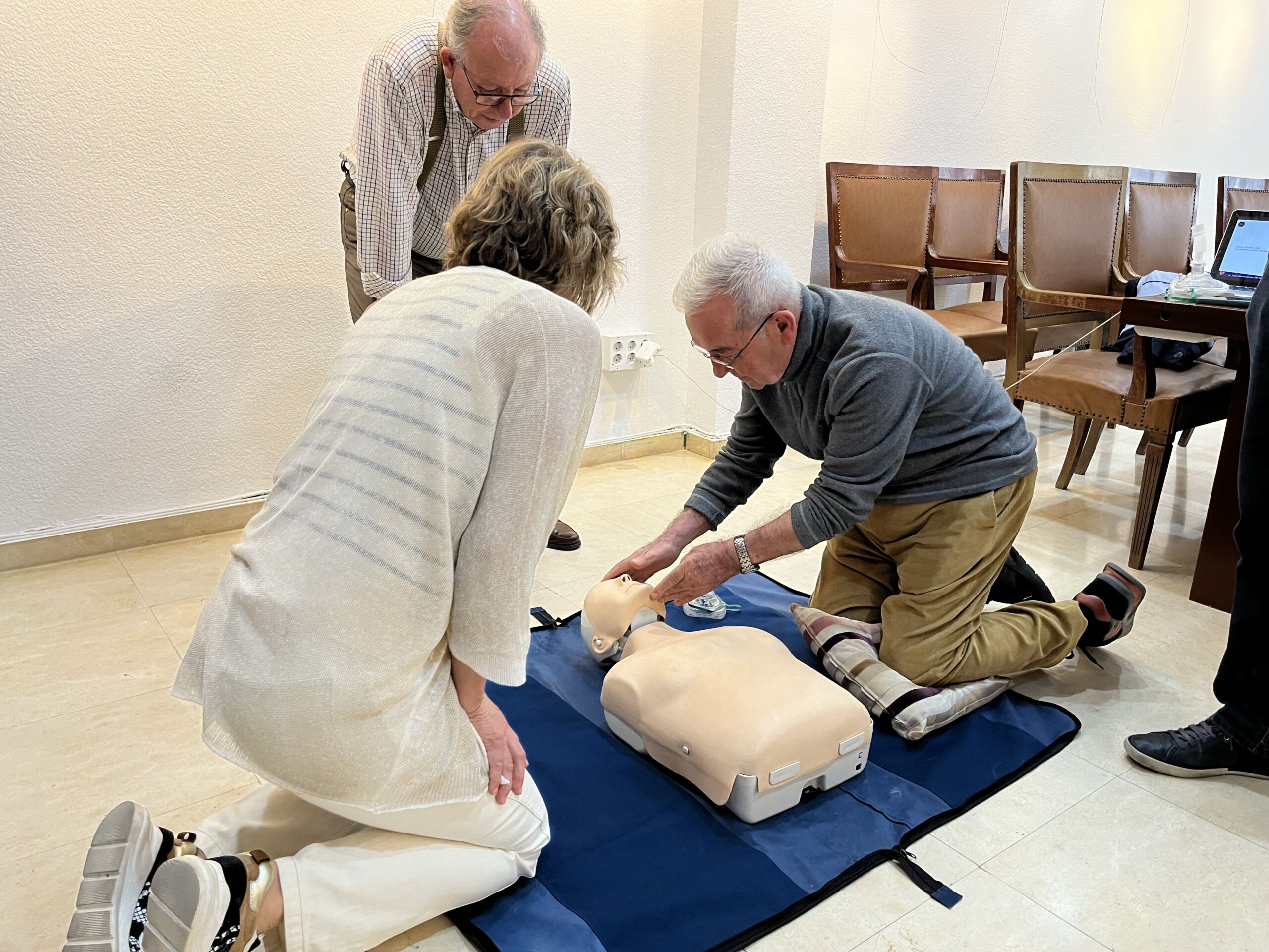 El curso, desarrollado en horario de mañana en la sede del Colegio, tiene como objetivo refrescar y/o enseñar a los médicos jubilados las maniobras básicas de RCP y el manejo del desfibrilador semiautomático (DESA), herramientas esenciales para poder actuar ante una emergencia vital mientras se espera la llegada de los recursos sanitarios profesionales.