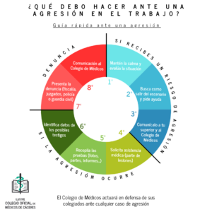 Desde el Colegio de Médicos te animamos a que denuncies toda agresión que sufras, y así evitar el ambiente de impunidad que suele rodear a este tipo de actos frecuentes. Debes saber que el médico que trabaja en los Servicios Sanitarios Públicos tienen el carácter de autoridad, por lo que los actos contra su integridad son susceptibles de ser tratados jurídicamente como delito de atentado.